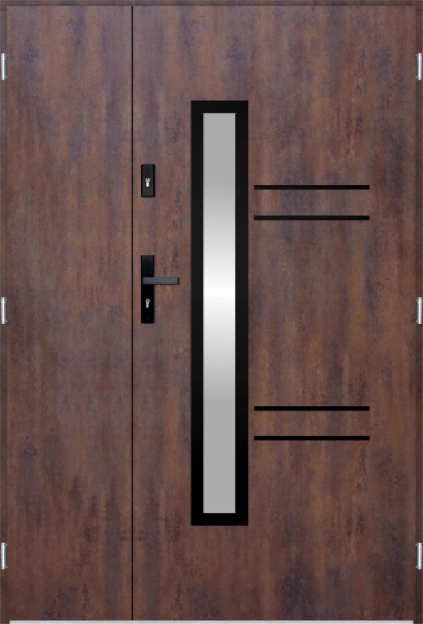 The door is made of stainless steel. Inside it is filled with PUR polyurethane foam and wood. The thickness of the door slab is 2.2 inch. Dual sealing system - one seal is in the dap of the frame and the other is located in the supporting part of the door slab. They reduce vibration and protect your house from losing the heat. They don't change their volume under the influence of atmospheric conditions. The door frame has anti-burglar reinforcements in hinge parts and locking points.