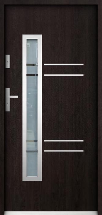 The door is made of stainless steel. Inside it is filled with PUR polyurethane foam and wood. The thickness of the door slab is 2.2 inch. Dual sealing system - one seal is in the dap of the frame and the other is located in the supporting part of the door slab. They reduce vibration and protect your house from losing the heat. They don't change their volume under the influence of atmospheric conditions. The door frame has anti-burglar reinforcements in hinge parts and locking points.