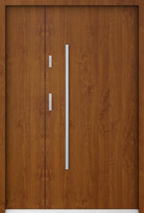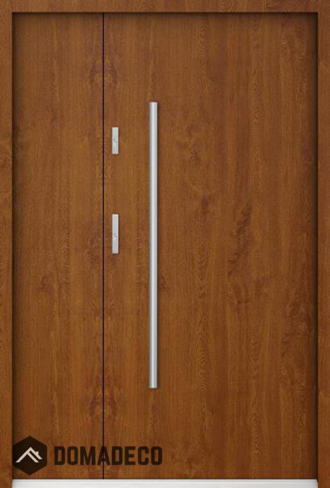 The door is made of stainless steel. Inside it is filled with PUR polyurethane foam and wood. The thickness of the door slab is 2.2 inch. Dual sealing system - one seal is in the dap of the frame and the other is located in the supporting part of the door slab. They reduce vibration and protect your house from losing the heat. They don't change their volume under the influence of atmospheric conditions. The door frame has anti-burglar reinforcements in hinge parts and locking points.