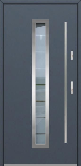 The door is made of stainless steel. Inside it is filled with PUR polyurethane foam and wood. The thickness of the door leaf is 64mm. Dual sealing system - one seal is in the dap of the frame and the other is located in the supporting part of the door leaf. They reduce vibration and protect your house from losing the heat. They don't change their volume under the influence of atmospheric conditions. The door frame has anti-burglar reinforcements in hinge parts and locking points.