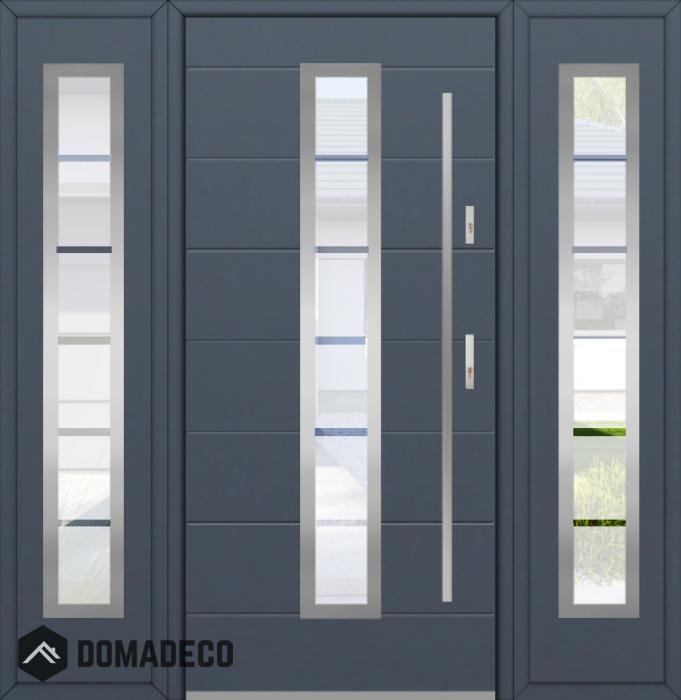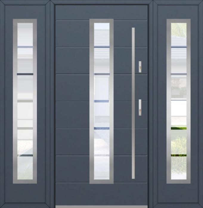 The door is made of stainless steel. Inside it is filled with PUR polyurethane foam and wood. The thickness of the door slab is 2.1 inch. Dual sealing system - one seal is in the dap of the frame and the other is located in the supporting part of the door slab. They reduce vibration and protect your house from losing the heat. They don't change their volume under the influence of atmospheric conditions. The door frame has anti-burglar reinforcements in hinge parts and locking points.