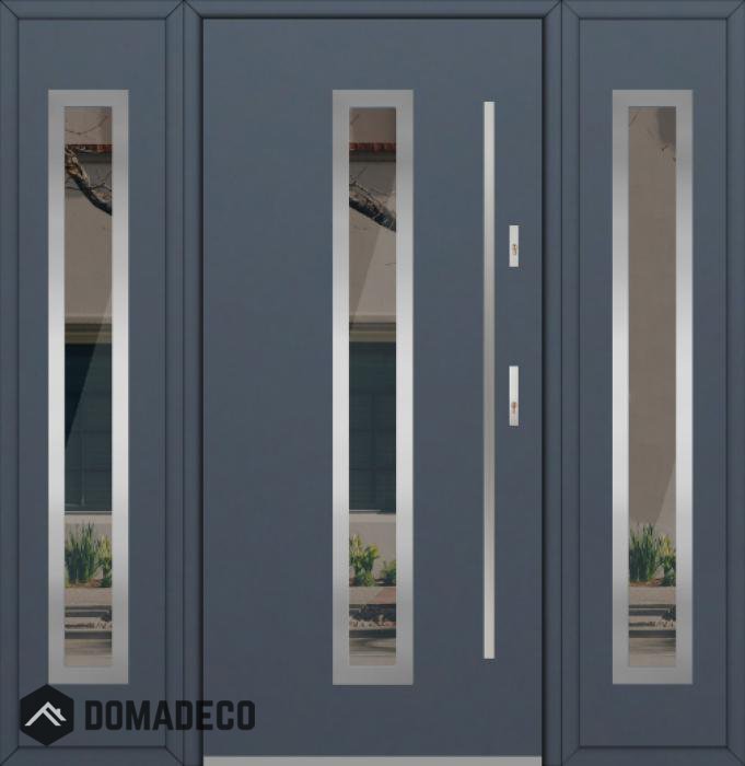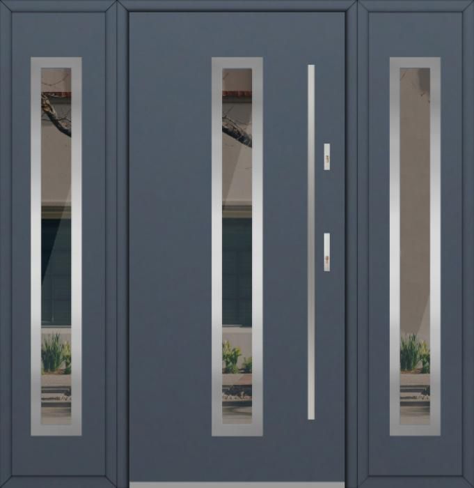 The door is made of stainless steel. Inside it is filled with PUR polyurethane foam and wood. The thickness of the door slab is 2.1 inch. Dual sealing system - one seal is in the dap of the frame and the other is located in the supporting part of the door slab. They reduce vibration and protect your house from losing the heat. They don't change their volume under the influence of atmospheric conditions. The door frame has anti-burglar reinforcements in hinge parts and locking points.