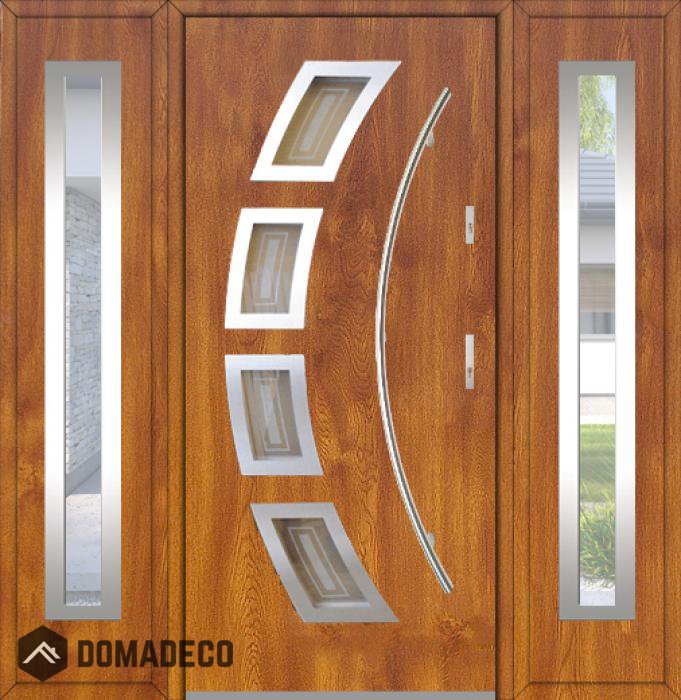 The door is made of stainless steel. Inside it is filled with PUR polyurethane foam and wood. The thickness of the door slab is 2.1 inch. Dual sealing system - one seal is in the dap of the frame and the other is located in the supporting part of the door slab. They reduce vibration and protect your house from losing the heat. They don't change their volume under the influence of atmospheric conditions. The door frame has anti-burglar reinforcements in hinge parts and locking points.