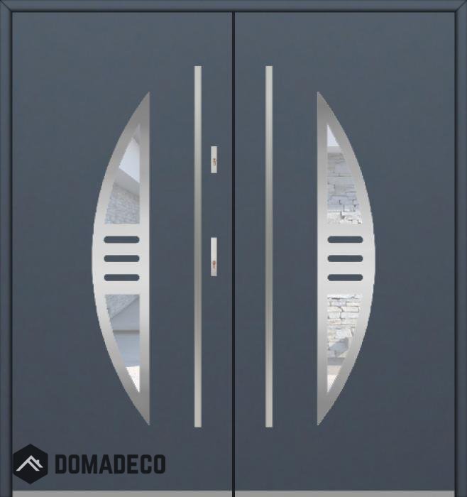 The door is made of stainless steel. Inside it is filled with PUR polyurethane foam and wood. The thickness of the door slab is 2.1 inch. Dual sealing system - one seal is in the dap of the frame and the other is located in the supporting part of the door slab. They reduce vibration and protect your house from losing the heat. They don't change their volume under the influence of atmospheric conditions. The door frame has anti-burglar reinforcements in hinge parts and locking points.