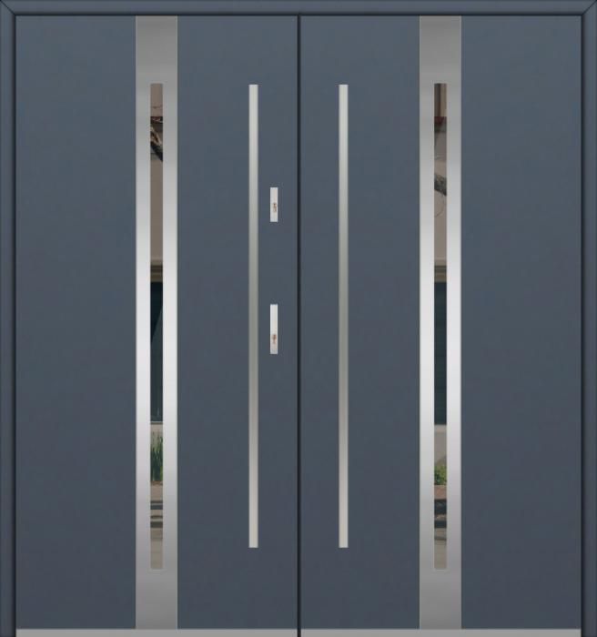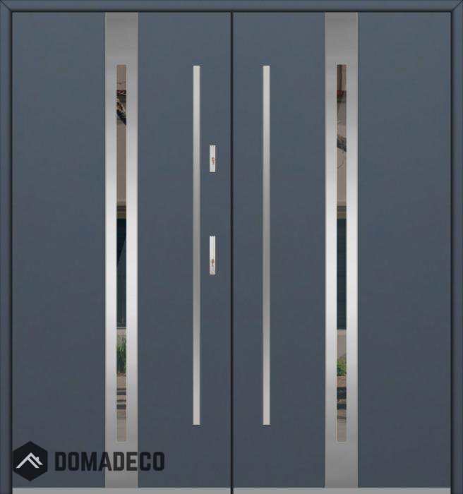 The door is made of stainless steel. Inside it is filled with PUR polyurethane foam and wood. The thickness of the door slab is 2.1 inch. Dual sealing system - one seal is in the dap of the frame and the other is located in the supporting part of the door slab. They reduce vibration and protect your house from losing the heat. They don't change their volume under the influence of atmospheric conditions. The door frame has anti-burglar reinforcements in hinge parts and locking points.