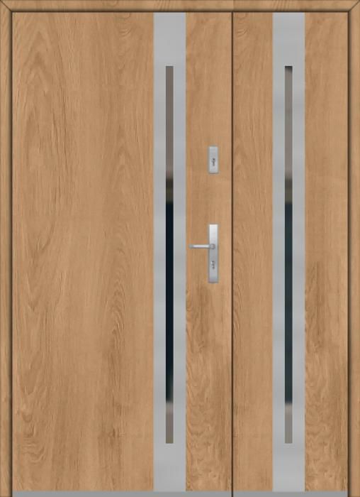 The door is made of stainless steel. Inside it is filled with PUR polyurethane foam and wood. The thickness of the door slab is 2.1 inch. Dual sealing system - one seal is in the dap of the frame and the other is located in the supporting part of the door slab. They reduce vibration and protect your house from losing the heat. They don't change their volume under the influence of atmospheric conditions. The door frame has anti-burglar reinforcements in hinge parts and locking points.