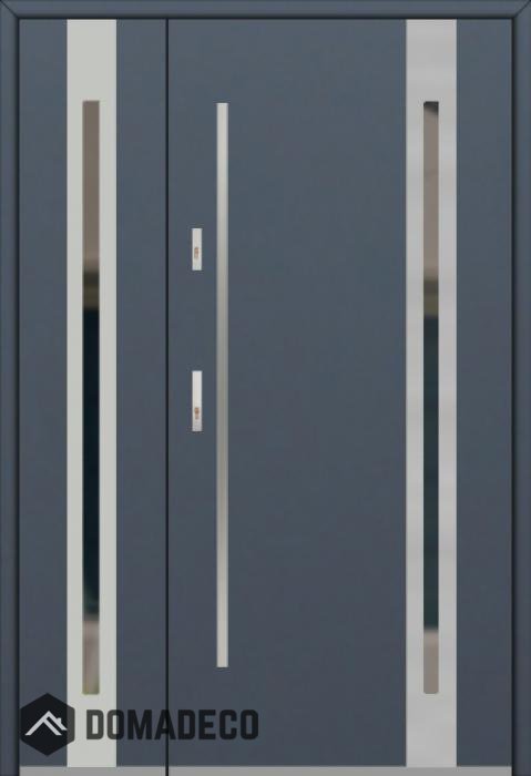 The door is made of stainless steel. Inside it is filled with PUR polyurethane foam and wood. The thickness of the door slab is 2.1 inch. Dual sealing system - one seal is in the dap of the frame and the other is located in the supporting part of the door slab. They reduce vibration and protect your house from losing the heat. They don't change their volume under the influence of atmospheric conditions. The door frame has anti-burglar reinforcements in hinge parts and locking points.