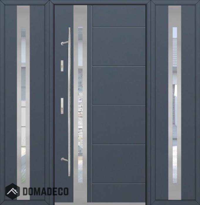 The door is made of stainless steel. Inside it is filled with PUR polyurethane foam and wood. The thickness of the door slab is 2.1 inch. Dual sealing system - one seal is in the dap of the frame and the other is located in the supporting part of the door slab. They reduce vibration and protect your house from losing the heat. They don't change their volume under the influence of atmospheric conditions. The door frame has anti-burglar reinforcements in hinge parts and locking points.