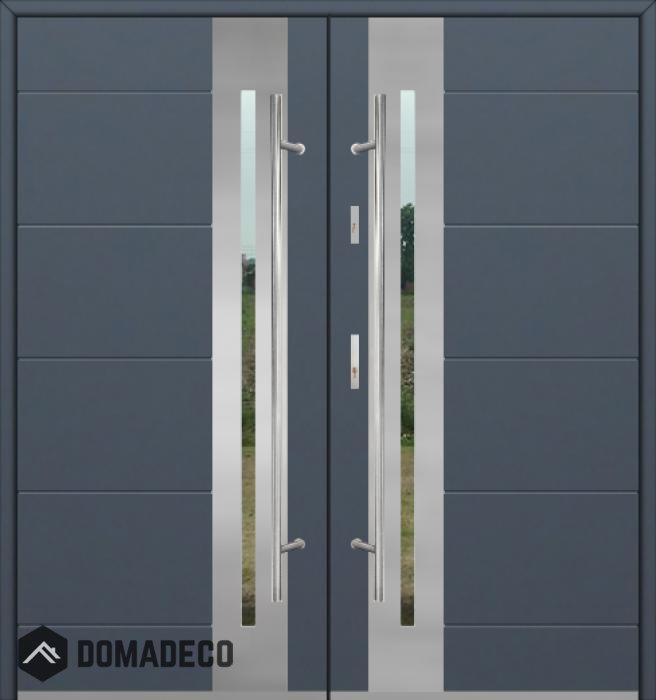 The door is made of stainless steel. Inside it is filled with PUR polyurethane foam and wood. The thickness of the door slab is 2.1 inch. Dual sealing system - one seal is in the dap of the frame and the other is located in the supporting part of the door slab. They reduce vibration and protect your house from losing the heat. They don't change their volume under the influence of atmospheric conditions. The door frame has anti-burglar reinforcements in hinge parts and locking points.