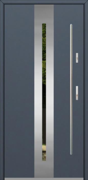 The door is made of stainless steel. Inside it is filled with PUR polyurethane foam and wood. The thickness of the door slab is 2.5 inch. Dual sealing system - one seal is in the dap of the frame and the other is located in the supporting part of the door slab. They reduce vibration and protect your house from losing the heat. They don't change their volume under the influence of atmospheric conditions. The door frame has anti-burglar reinforcements in hinge parts and locking points.
