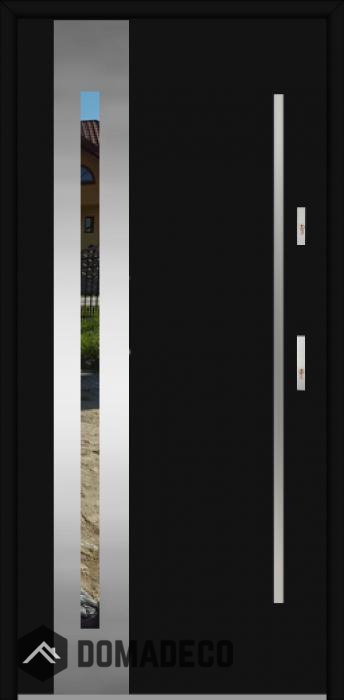 The door is made of stainless steel. Inside it is filled with PUR polyurethane foam and wood. The thickness of the door slab is 2.5 inch. Dual sealing system - one seal is in the dap of the frame and the other is located in the supporting part of the door slab. They reduce vibration and protect your house from losing the heat. They don't change their volume under the influence of atmospheric conditions. The door frame has anti-burglar reinforcements in hinge parts and locking points.