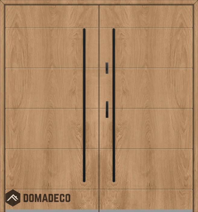 The door is made of stainless steel. Inside it is filled with PUR polyurethane foam and wood. The thickness of the door slab is 2.1 inch. Dual sealing system - one seal is in the dap of the frame and the other is located in the supporting part of the door slab. They reduce vibration and protect your house from losing the heat. They don't change their volume under the influence of atmospheric conditions. The door frame has anti-burglar reinforcements in hinge parts and locking points.