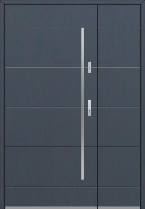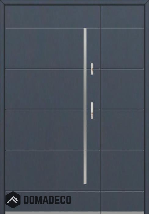 The door is made of stainless steel. Inside it is filled with PUR polyurethane foam and wood. The thickness of the door slab is 2.1 inch. Dual sealing system - one seal is in the dap of the frame and the other is located in the supporting part of the door slab. They reduce vibration and protect your house from losing the heat. They don't change their volume under the influence of atmospheric conditions. The door frame has anti-burglar reinforcements in hinge parts and locking points.