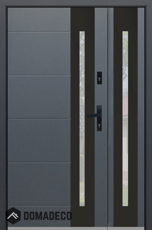 The door is made of stainless steel. Inside it is filled with PUR polyurethane foam and wood. The thickness of the door slab is 2.1 inch. Dual sealing system - one seal is in the dap of the frame and the other is located in the supporting part of the door slab. They reduce vibration and protect your house from losing the heat. They don't change their volume under the influence of atmospheric conditions. The door frame has anti-burglar reinforcements in hinge parts and locking points.