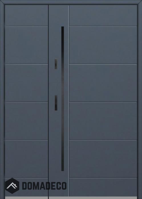 The door is made of stainless steel. Inside it is filled with PUR polyurethane foam and wood. The thickness of the door slab is 2.1 inch. Dual sealing system - one seal is in the dap of the frame and the other is located in the supporting part of the door slab. They reduce vibration and protect your house from losing the heat. They don't change their volume under the influence of atmospheric conditions. The door frame has anti-burglar reinforcements in hinge parts and locking points.