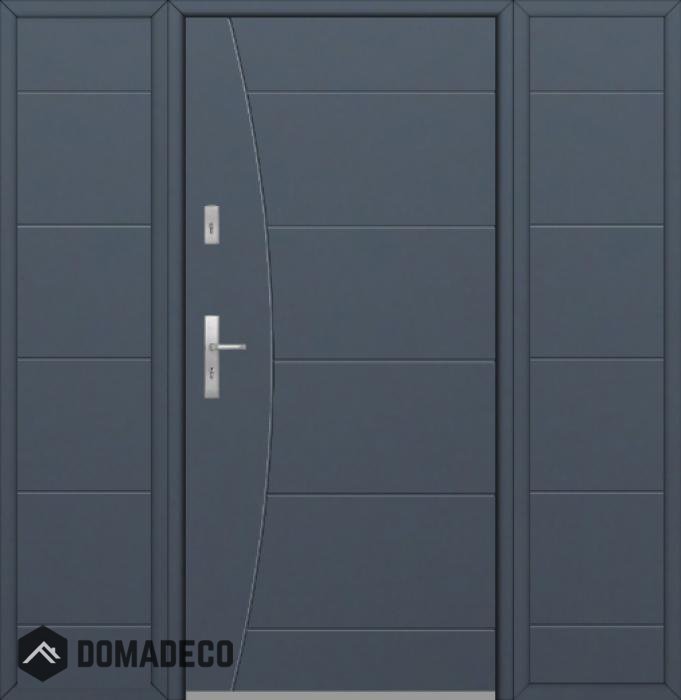 The door is made of stainless steel. Inside it is filled with PUR polyurethane foam and wood. The thickness of the door slab is 2.1 inch. Dual sealing system - one seal is in the dap of the frame and the other is located in the supporting part of the door slab. They reduce vibration and protect your house from losing the heat. They don't change their volume under the influence of atmospheric conditions. The door frame has anti-burglar reinforcements in hinge parts and locking points.