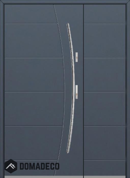 The door is made of stainless steel. Inside it is filled with PUR polyurethane foam and wood. The thickness of the door slab is 2.1 inch. Dual sealing system - one seal is in the dap of the frame and the other is located in the supporting part of the door slab. They reduce vibration and protect your house from losing the heat. They don't change their volume under the influence of atmospheric conditions. The door frame has anti-burglar reinforcements in hinge parts and locking points.