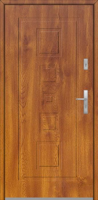 The door is made of stainless steel. Inside it is filled with PUR polyurethane foam and wood. The thickness of the door leaf is 64mm. Dual sealing system - one seal is in the dap of the frame and the other is located in the supporting part of the door leaf. They reduce vibration and protect your house from losing the heat. They don't change their volume under the influence of atmospheric conditions. The door frame has anti-burglar reinforcements in hinge parts and locking points.