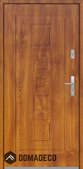 The door is made of stainless steel. Inside it is filled with PUR polyurethane foam and wood. The thickness of the door slab is 2.5 inch. Dual sealing system - one seal is in the dap of the frame and the other is located in the supporting part of the door slab. They reduce vibration and protect your house from losing the heat. They don't change their volume under the influence of atmospheric conditions. The door frame has anti-burglar reinforcements in hinge parts and locking points.