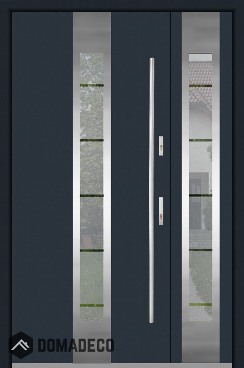The door is made of stainless steel. Inside it is filled with PUR polyurethane foam and wood. The thickness of the door slab is 2.1 inch. Dual sealing system - one seal is in the dap of the frame and the other is located in the supporting part of the door slab. They reduce vibration and protect your house from losing the heat. They don't change their volume under the influence of atmospheric conditions. The door frame has anti-burglar reinforcements in hinge parts and locking points.