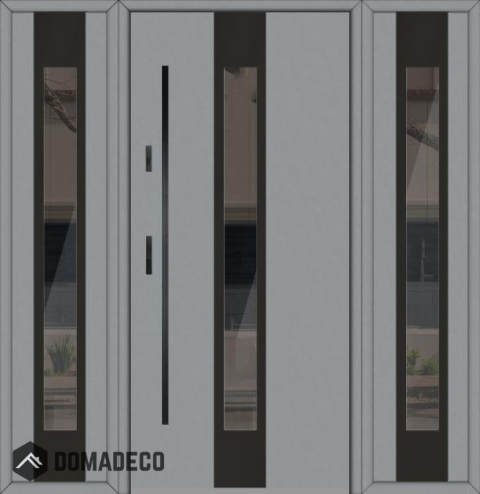 The door is made of stainless steel. Inside it is filled with PUR polyurethane foam and wood. The thickness of the door slab is 2.1 inch. Dual sealing system - one seal is in the dap of the frame and the other is located in the supporting part of the door slab. They reduce vibration and protect your house from losing the heat. They don't change their volume under the influence of atmospheric conditions. The door frame has anti-burglar reinforcements in hinge parts and locking points.