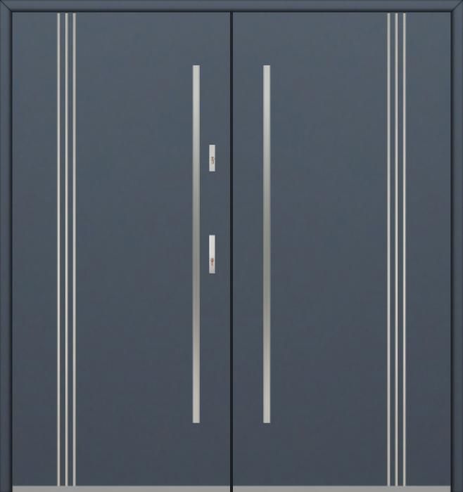 The door is made of stainless steel. Inside it is filled with PUR polyurethane foam and wood. The thickness of the door slab is 2.1 inch. Dual sealing system - one seal is in the dap of the frame and the other is located in the supporting part of the door slab. They reduce vibration and protect your house from losing the heat. They don't change their volume under the influence of atmospheric conditions. The door frame has anti-burglar reinforcements in hinge parts and locking points.