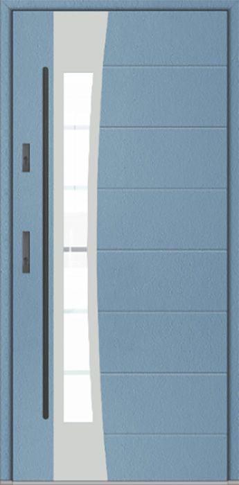 The door is made of stainless steel. Inside it is filled with PUR polyurethane foam and wood. The thickness of the door slab is 2.5 inch. Dual sealing system - one seal is in the dap of the frame and the other is located in the supporting part of the door slab. They reduce vibration and protect your house from losing the heat. They don't change their volume under the influence of atmospheric conditions. The door frame has anti-burglar reinforcements in hinge parts and locking points.