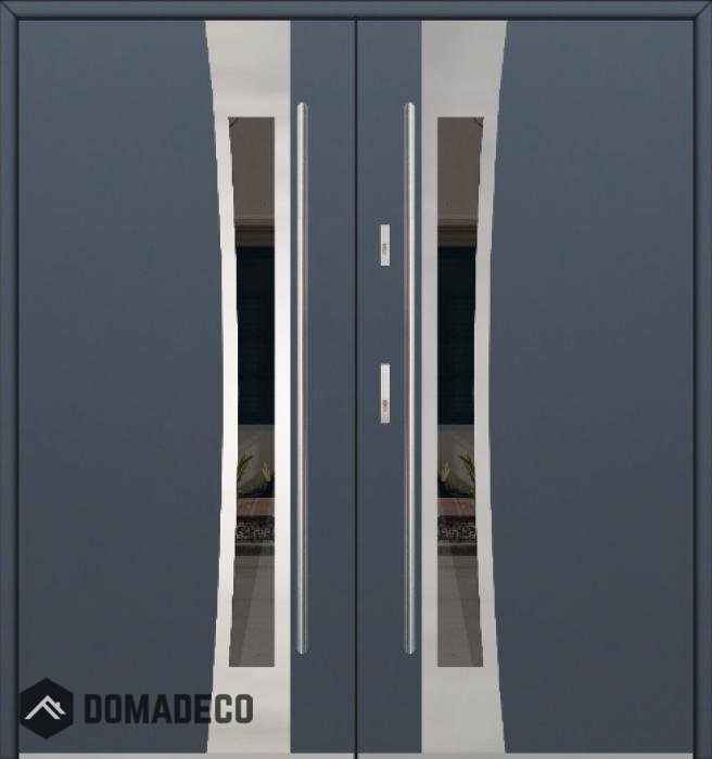 The door is made of stainless steel. Inside it is filled with PUR polyurethane foam and wood. The thickness of the door slab is 2.1 inch. Dual sealing system - one seal is in the dap of the frame and the other is located in the supporting part of the door slab. They reduce vibration and protect your house from losing the heat. They don't change their volume under the influence of atmospheric conditions. The door frame has anti-burglar reinforcements in hinge parts and locking points.