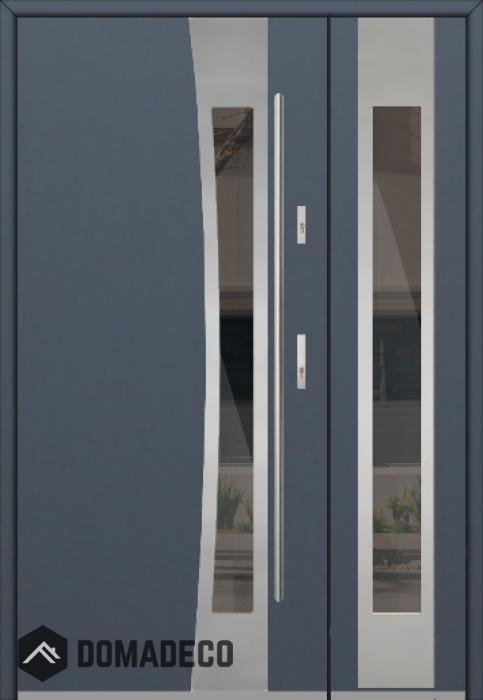 The door is made of stainless steel. Inside it is filled with PUR polyurethane foam and wood. The thickness of the door slab is 2.1 inch. Dual sealing system - one seal is in the dap of the frame and the other is located in the supporting part of the door slab. They reduce vibration and protect your house from losing the heat. They don't change their volume under the influence of atmospheric conditions. The door frame has anti-burglar reinforcements in hinge parts and locking points.