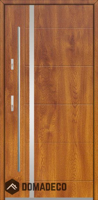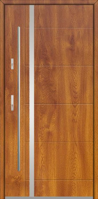 The door is made of stainless steel. Inside it is filled with PUR polyurethane foam and wood. The thickness of the door slab is 2.5 inch. Dual sealing system - one seal is in the dap of the frame and the other is located in the supporting part of the door slab. They reduce vibration and protect your house from losing the heat. They don't change their volume under the influence of atmospheric conditions. The door frame has anti-burglar reinforcements in hinge parts and locking points.