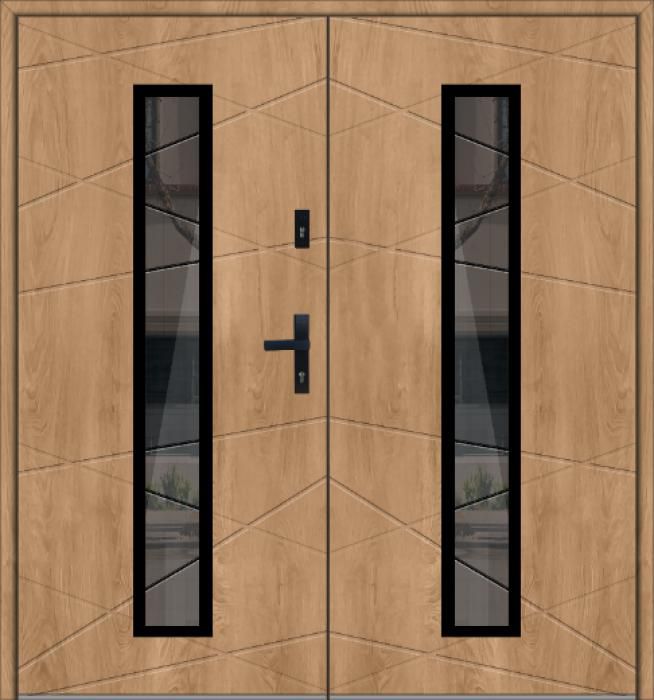 The door is made of stainless steel. Inside it is filled with PUR polyurethane foam and wood. The thickness of the door slab is 2.1 inch. Dual sealing system - one seal is in the dap of the frame and the other is located in the supporting part of the door slab. They reduce vibration and protect your house from losing the heat. They don't change their volume under the influence of atmospheric conditions. The door frame has anti-burglar reinforcements in hinge parts and locking points.