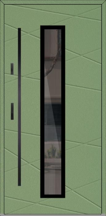 The door is made of stainless steel. Inside it is filled with PUR polyurethane foam and wood. The thickness of the door leaf is 64mm. Dual sealing system - one seal is in the dap of the frame and the other is located in the supporting part of the door leaf. They reduce vibration and protect your house from losing the heat. They don't change their volume under the influence of atmospheric conditions. The door frame has anti-burglar reinforcements in hinge parts and locking points.