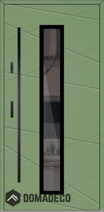The door is made of stainless steel. Inside it is filled with PUR polyurethane foam and wood. The thickness of the door slab is 2.5 inch. Dual sealing system - one seal is in the dap of the frame and the other is located in the supporting part of the door slab. They reduce vibration and protect your house from losing the heat. They don't change their volume under the influence of atmospheric conditions. The door frame has anti-burglar reinforcements in hinge parts and locking points.