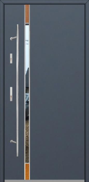 Modern design based on new technology consisting of flushing stainless steel elements on the door surface.
