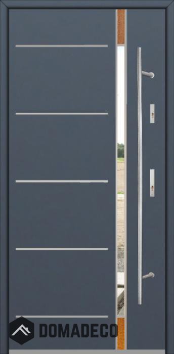 Modern design based on new technology consisting of flushing stainless steel elements on the door surface.