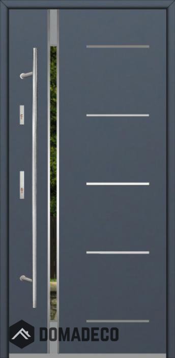 Modern design based on new technology consisting of flushing stainless steel elements on the door surface.