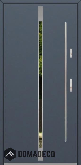 Modern design based on new technology consisting of flushing stainless steel elements on the door surface.