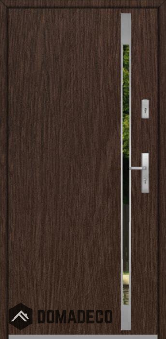 Modern design based on new technology consisting of flushing stainless steel elements on the door surface.