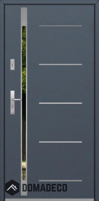 Modern design based on new technology consisting of flushing stainless steel elements on the door surface.