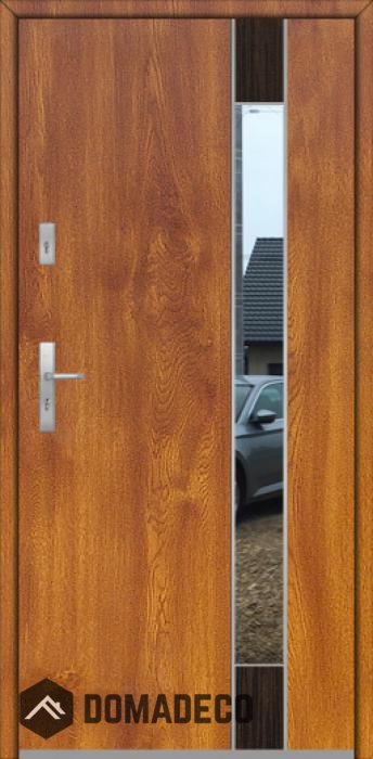 The door is made of stainless steel. Inside are filled with foam and wood. The casing is covered with aluminum.