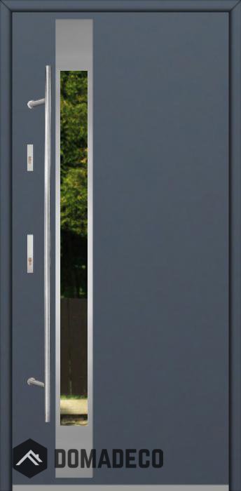 Modern design based on new technology consisting of flushing stainless steel elements on the door surface.