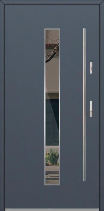 Modern design based on new technology consisting of flushing stainless steel elements on the door surface.