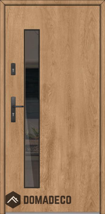 Modern design based on new technology consisting of flushing stainless steel elements on the door surface.