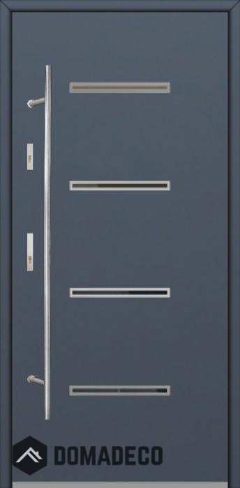 Modern design based on new technology consisting of flushing stainless steel elements on the door surface.