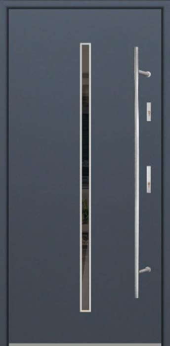 Modern design based on new technology consisting of flushing stainless steel elements on the door surface.