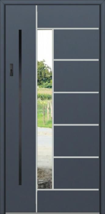 Modern design based on new technology consisting of flushing stainless steel elements on the door surface.