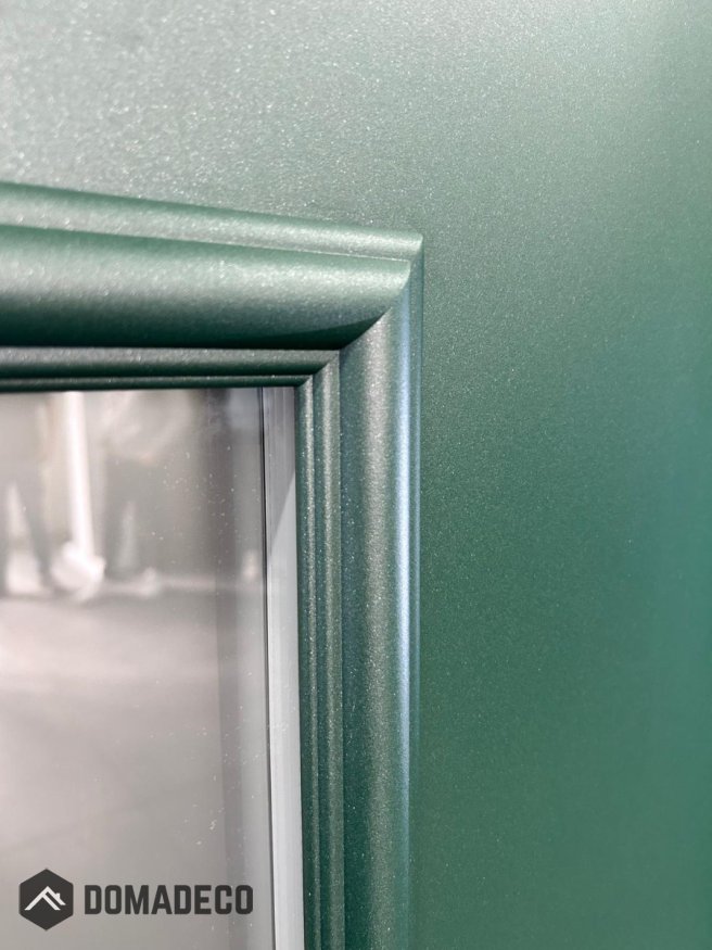 The door is made of stainless steel. Inside it is filled with PUR polyurethane foam and wood. The thickness of the door slab is 2.5 inch. Dual sealing system - one seal is in the dap of the frame and the other is located in the supporting part of the door slab. They reduce vibration and protect your house from losing the heat. They don't change their volume under the influence of atmospheric conditions. The door frame has anti-burglar reinforcements in hinge parts and locking points.
