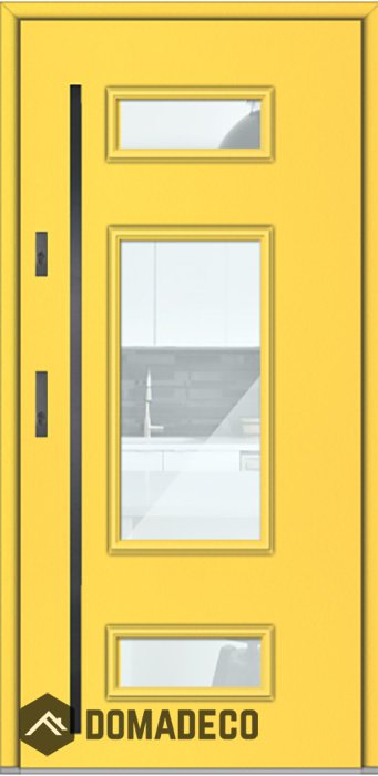 The door is made of stainless steel. Inside it is filled with PUR polyurethane foam and wood. The thickness of the door slab is 2.5 inch. Dual sealing system - one seal is in the dap of the frame and the other is located in the supporting part of the door slab. They reduce vibration and protect your house from losing the heat. They don't change their volume under the influence of atmospheric conditions. The door frame has anti-burglar reinforcements in hinge parts and locking points.