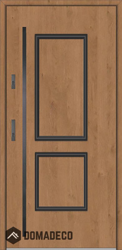 The door is made of stainless steel. Inside it is filled with PUR polyurethane foam and wood. The thickness of the door slab is 2.5 inch. Dual sealing system - one seal is in the dap of the frame and the other is located in the supporting part of the door slab. They reduce vibration and protect your house from losing the heat. They don't change their volume under the influence of atmospheric conditions. The door frame has anti-burglar reinforcements in hinge parts and locking points.