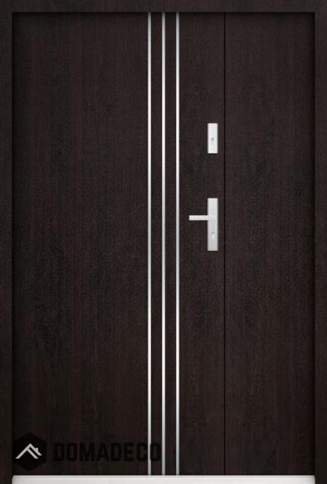 The door is made of stainless steel. Inside it is filled with PUR polyurethane foam and wood. The thickness of the door slab is 2.2 inch. Dual sealing system - one seal is in the dap of the frame and the other is located in the supporting part of the door slab. They reduce vibration and protect your house from losing the heat. They don't change their volume under the influence of atmospheric conditions. The door frame has anti-burglar reinforcements in hinge parts and locking points.